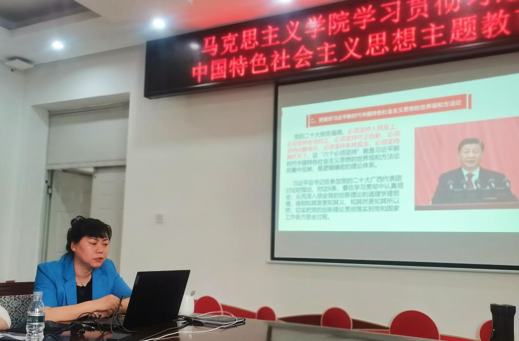 在进行理论阐述后,讲授“把握好习近平新时代中国特色社会主义思想的世界观和方法论”时,马吉芬同志结合工作实际,以《原理》和《铁人精神育人》等公司和国家级一流课程为例,提出了课程建设问题,同时也给出了解决教师急难愁盼问题的对策建议。