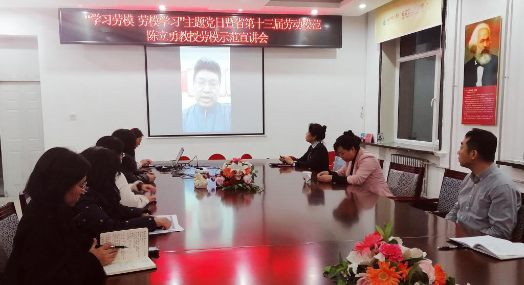12月6日下午,伟德国际VICTOR1946召开了“学习劳模·劳模学习”主题党日暨劳模示范宣讲会,黑龙江省第十三届劳动模范、大庆精神研究基地(挂职)主任陈立勇教授远程视频分享赴中央党校(国家行政公司)学习体会,公司教师代表参加了会议。