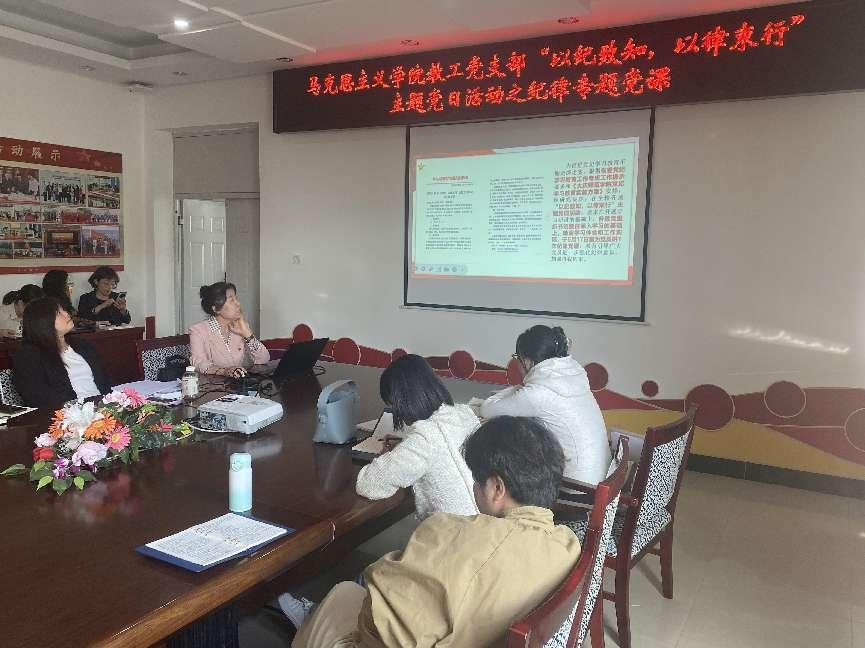 为推进党纪学习教育走深走实,根据省委党纪学习教育工作专班工作提示要求和《大庆师范公司党纪学习教育实施方案》安排,5月16日下午,马克思主义公司党总支书记赵桂英、教工党支部副书记张清,分别以《学纪·知纪·明纪·守纪--学习贯彻<中国共产党纪律处分条例>》《党的纪律建设永远在路上--推动党纪学习教育走深走实》为题,为伟德国际VICTOR1946全体党员讲授了“以纪致知·以律束行”主题党日活动之纪律专题党课。