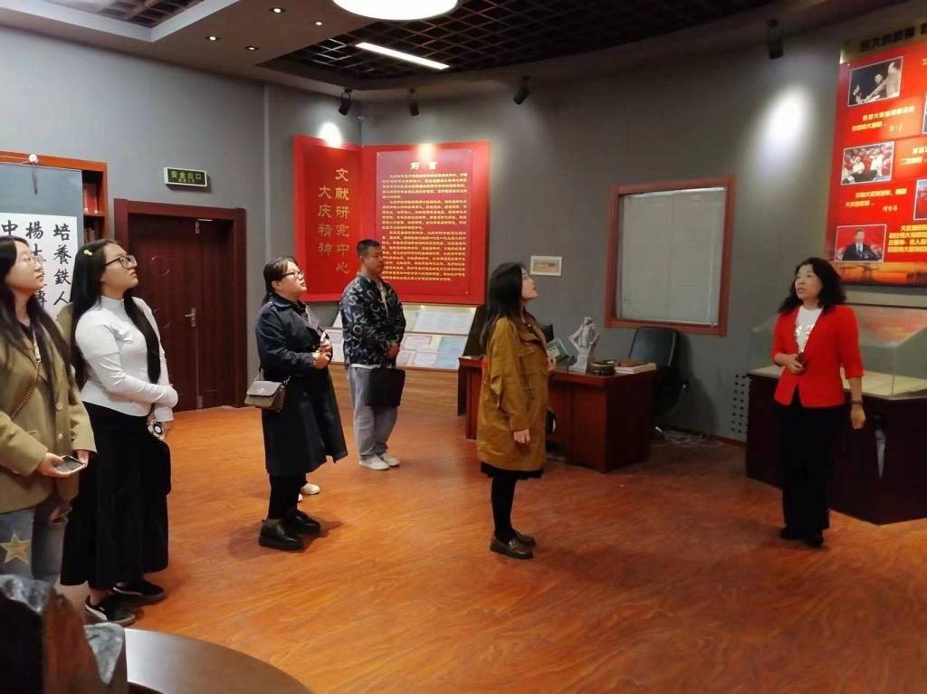 会后,赵桂英书记陪同时晶钰部长一行来到大庆精神文献研究中心参观,并亲自作了讲解。宣讲员们听得认真、看得投入,对公司大庆精神理论研究与实践研修取得的成果赞叹不已,表示有机会一定再来校作进一步学习交流。