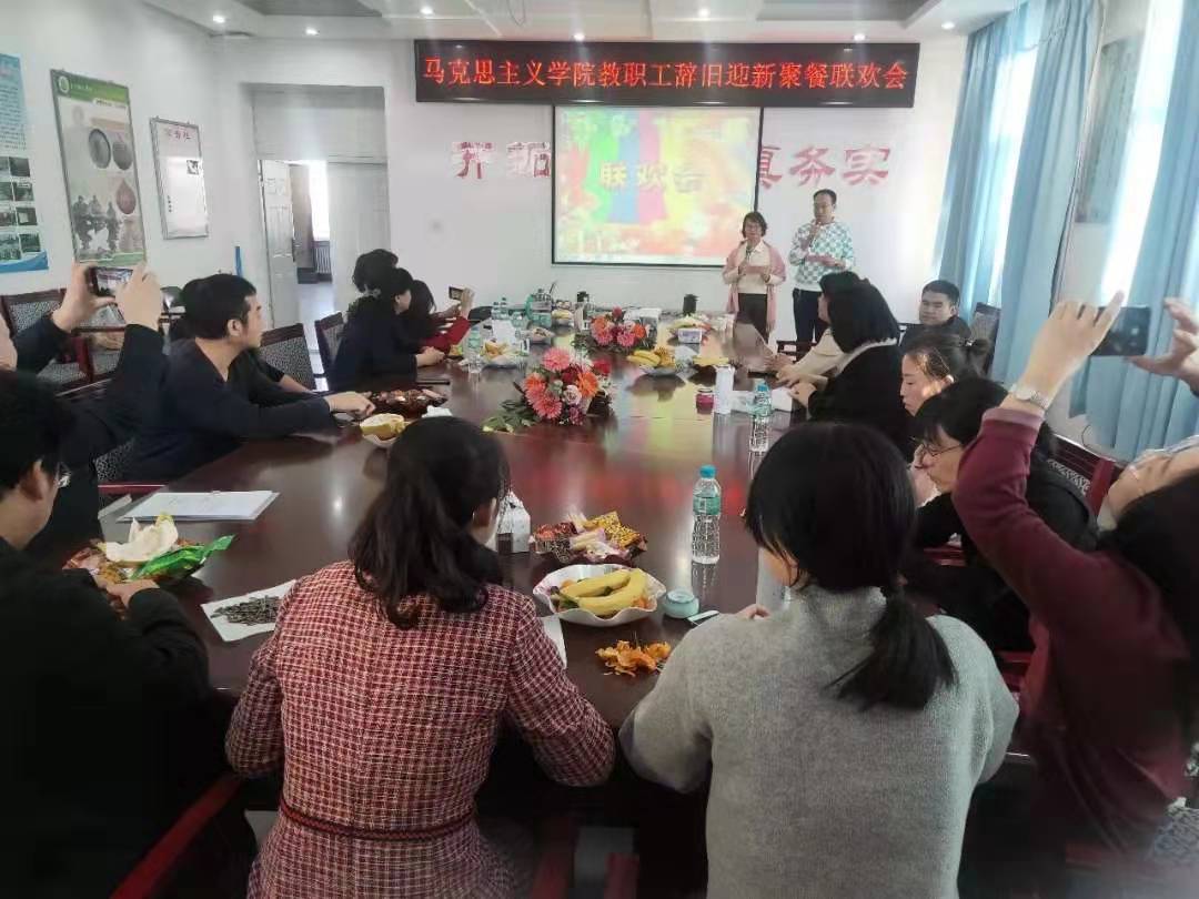 被称为马院歌神的贾秋实老师的一曲《一剪梅》暖场歌曲一下子就让大家进入的了联欢的情景中,紧接着的桃花朵朵开互动游戏让大家喜笑颜开,联欢活动热浪袭来,大家互动踊跃,演唱尽兴,开心迎接新的一年的到来。