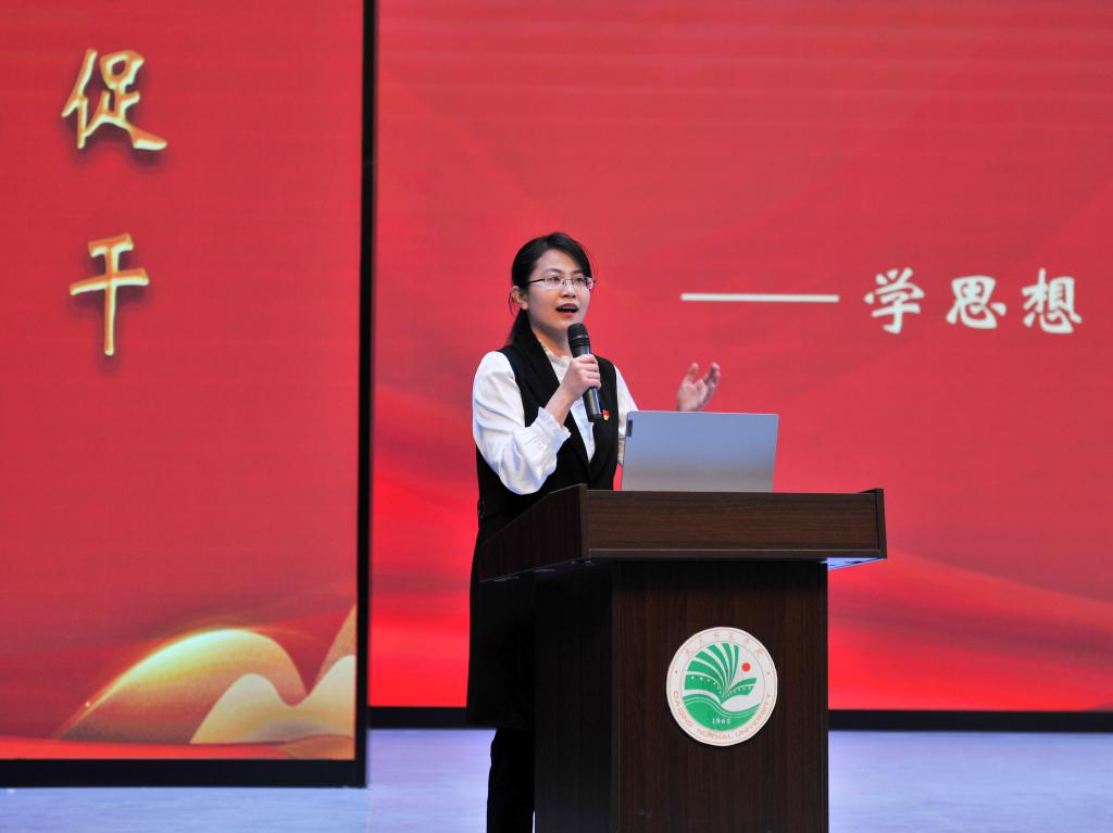 伟德国际VICTOR1946“新思想概论”教研室主任赵雪首先作了题为《争做“自找苦吃”的新时代好青年》的宣讲,她从习近平总书记给中国农业大学科技小院同学们的回信入手,探讨了什么是“自讨苦吃”、为什么“自讨苦吃”、怎么样“自讨苦吃”等问题,引起了师生广泛共鸣。