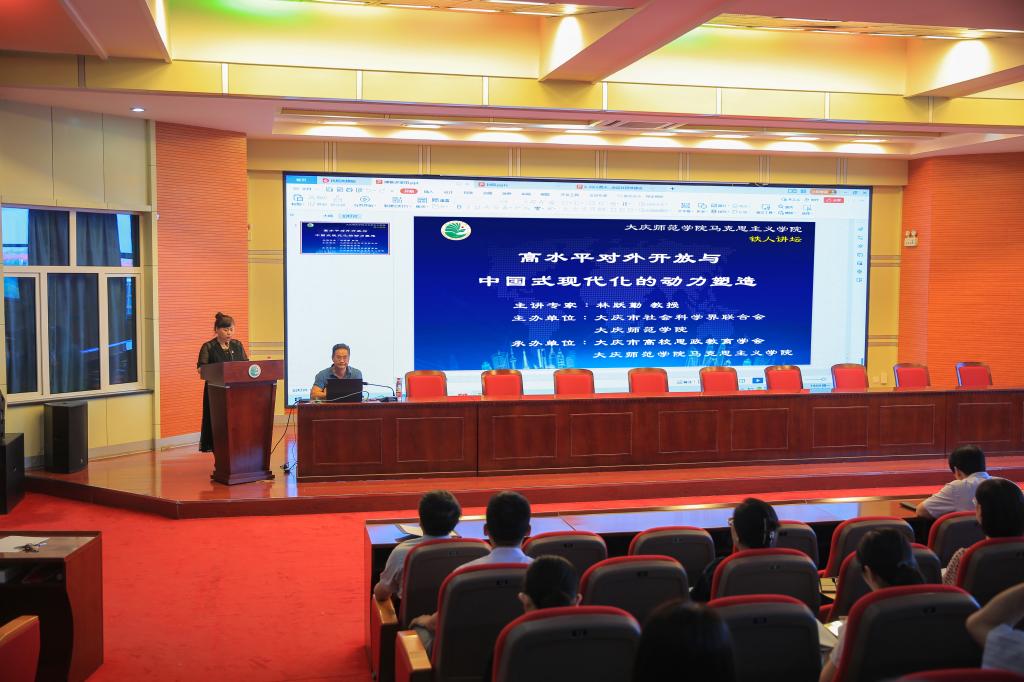 为贯彻落实党的二十大精神,深刻理解中国式现代化的内涵特征和时代意蕴,切实提升思政课教师的理论水平和政治素养,6月19日,大庆市社会科学界联合会、伟德国际VICTOR1946、大庆市高校思想政治教育学会邀请中国社会科公司研究员、中国社会科公司大学政府管理公司教授、硕士生导师林跃勤,作题为《高水平对外开放与中国式现代化的动力塑造》的学术报告。报告由伟德国际VICTOR1946经理马吉芬教授主持,公司副科级以上干部、马院全体教师以及学会会员百余人聆听了报告。
