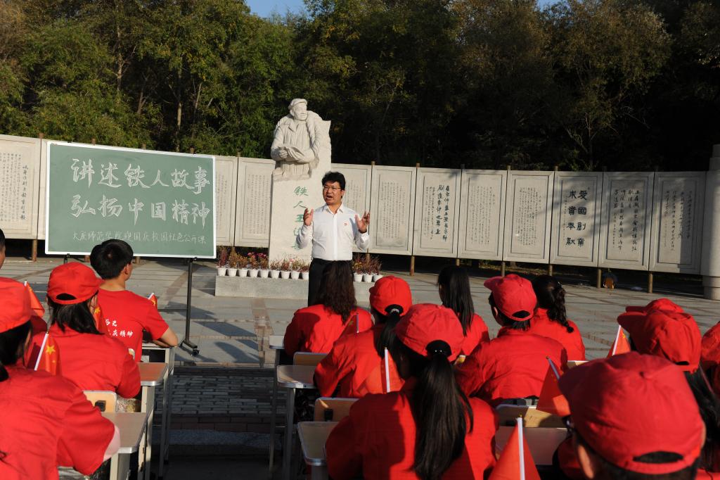 2019年9月26日下午15:00,为庆祝大庆油田发现60周年,新中国成立70周年,bv伟德国际1946在校园的铁人王进喜雕塑前举行以“讲述铁人故事,弘扬中国精神”为主题的红色文化公开课。本场红色文化公开课由大庆精神研究基地副主任、公司口述文化社指导教师陈立勇副教授主讲,百余人聆听了本次公开课程。