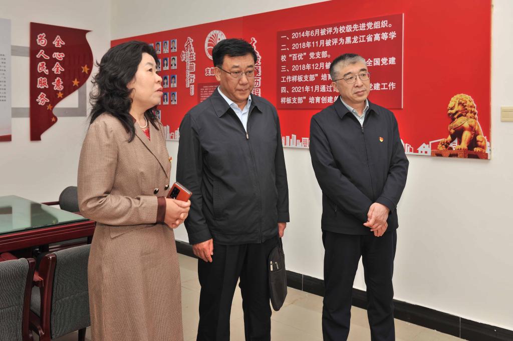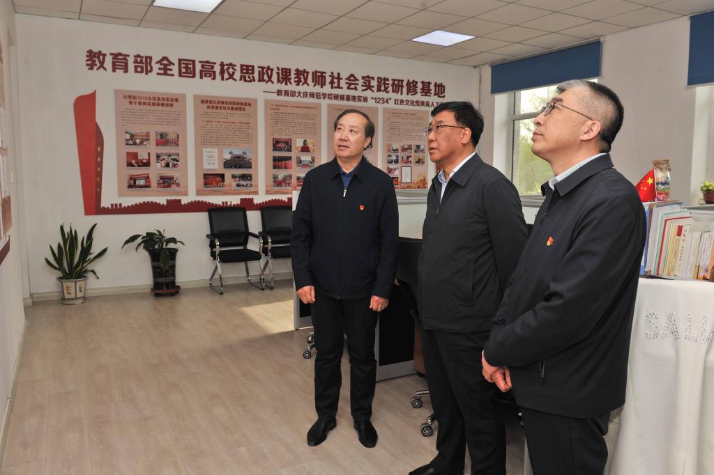 赵科学和指导组先后来到大庆精神文献研究中心、伟德国际VICTOR1946教工党支部党员之家、设在公司的全国高校思想政治理论课教师研修基地以及伟德国际VICTOR1946各教研室走访调研。了解了公司近年来大庆精神研究的主要方向和科研成果,听取了首批“全国高校样板党支部”的创建工作经验,考察了设在公司的全国高校思想政治理论课教师研修基地建设情况,观看了铁人精神育人思政课程教学成果。