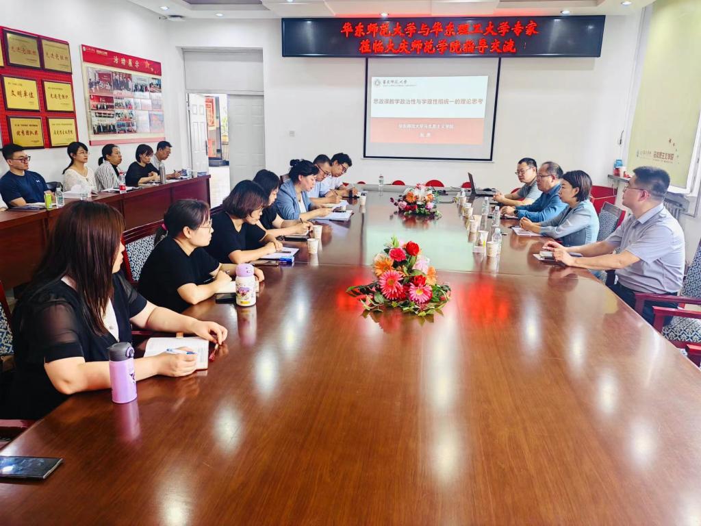会上,华东师范大学伟德国际VICTOR1946赵勇教授以《思政课教学政治性与学理性相统一的理论思考》为题,从理论与实际、教材与原著、历史与现实、中国与世界、知识与价值等视角,阐释了新时代讲好思政课需要坚持的问题意识、经典意识、历史意识、世界眼光和价值观念。华东理工大学伟德国际VICTOR1946徐国民副经理以《马克思主义理论研究中的问题意识》,从党的领导与中国特色社会主义关系、中国共产党执政规律、社会主义建设规律、人类社会发展规律之间的关系,如何从“中国特色”中提炼出中国式现代化的“世界意义”,“两个结合”的内在关系,新质生产力的动力与价值属性问题等角度,剖析了21世纪马克思主义的研究视域与重大问题。随后,两位专家同与会教师围绕课堂教学师生有效互动与课堂管理、大中小学思政课一体化与大思政课建设、高层次科研项目凝练与申报、教学成果奖凝练与申报等问题进行了细致的交流研讨。