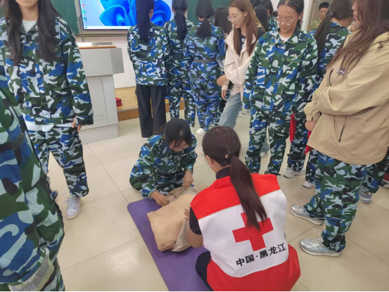 理论讲解后,培训进入实践操作环节。现场摆放模拟人体模型与急救道具,新生以小组为单位轮流上手练习。急救人员逐组巡回指导,针对操作中常见的“按压位置偏移”“呼吸吹气不足”等问题及时纠正,手把手帮助新生调整动作幅度与节奏。从生疏模仿到熟练操作,新生们在反复练习中逐步掌握技巧,部分同学还主动充当“患者”,配合同伴完成全流程演练,现场学习氛围浓厚。