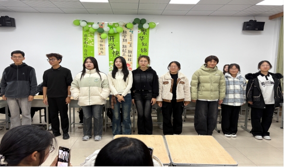 活动现场氛围热烈,班级干部以“低门槛、强互动、重联结”为原则设计环节。自我介绍环节摒弃传统模式,采用创新环节破冰之旅第一站“你是谁”,每个人拿张白纸,写或画一个简短的自我描述,将所有纸张放在桌子中间,尝试匹配每张纸与对应的人。破冰之旅第二站,反口令大赛,所有人站成一排,主持人发出指令,比如“举左手”“向前走两步”“摸右眼”等玩家需要做出与指令相反的动作,一旦有人做错动作或者反应慢,就被淘汰,坚持到最后的人获得胜利,获胜者可以指定其他玩家用“反话”交流5句话,比如玩家说“你好”对方要回应“再见”。团队协作游戏中,无论是考验默契的“你画是谁”,还是需要考验反应力的反口令比赛,同学们从最初的腼腆犹豫,到主动分工、互相鼓励,陌生感在笑声与协作中逐渐消融。