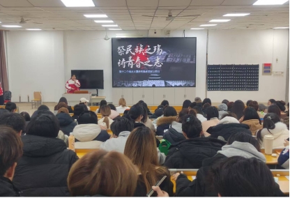 本次活动以“铭记历史伤痕,勇担时代使命”为主题。宣讲环节,宣讲成员刘梦阳同学和曹智惠同学以详实的历史文献、珍贵的影像资料为支撑,系统梳理南京大屠杀的历史脉络,深入剖析这段沉痛历史背后的深刻教训,阐释设立国家公祭日并非宣扬仇恨,而是以史为鉴、警示后人的深远意义。同时结合自身学习感悟,分享新时代青年如何将铭记历史的情怀转化为奋发图强的动力,号召同学们立足专业所学,不断践行使命担当。在互动环节中,同学们围绕“历史记忆与青年责任”展开热烈讨论,大家纷纷表示,要以实际行动守护历史真相,传承红色基因。